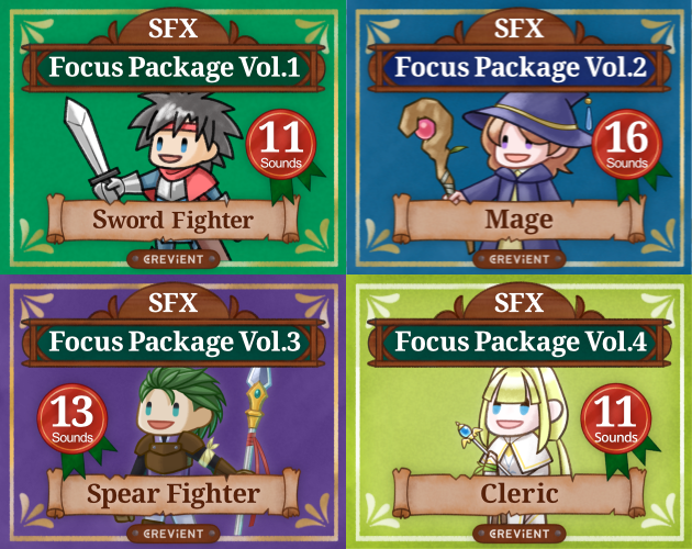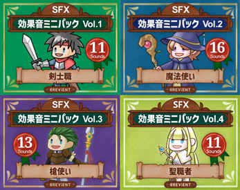 RPGやファンタジー作品で頻出する4つの基本職業に必要な効果音をまとめて収録したバンドルパックです。